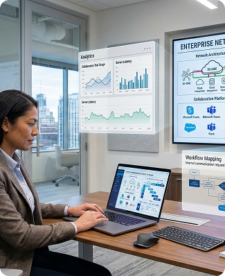 Evaluating existing voice, collaboration, and data systems to identify performance gaps and implement improvements for greater efficiency and reliability.
